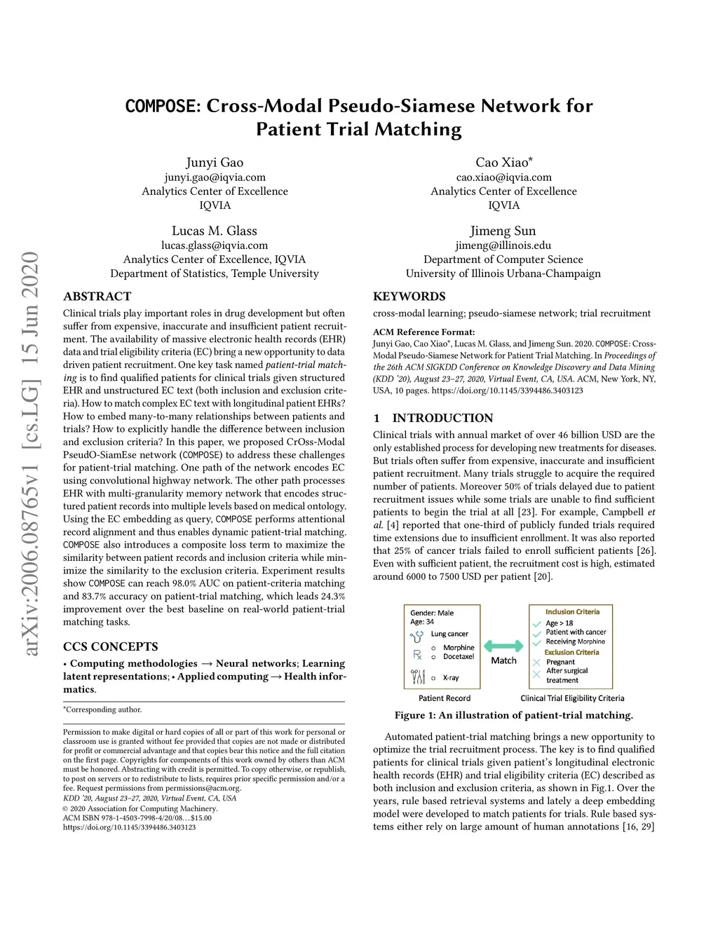 COMPOSE: Cross-Modal Pseudo-Siamese Network for Patient Trial Matching