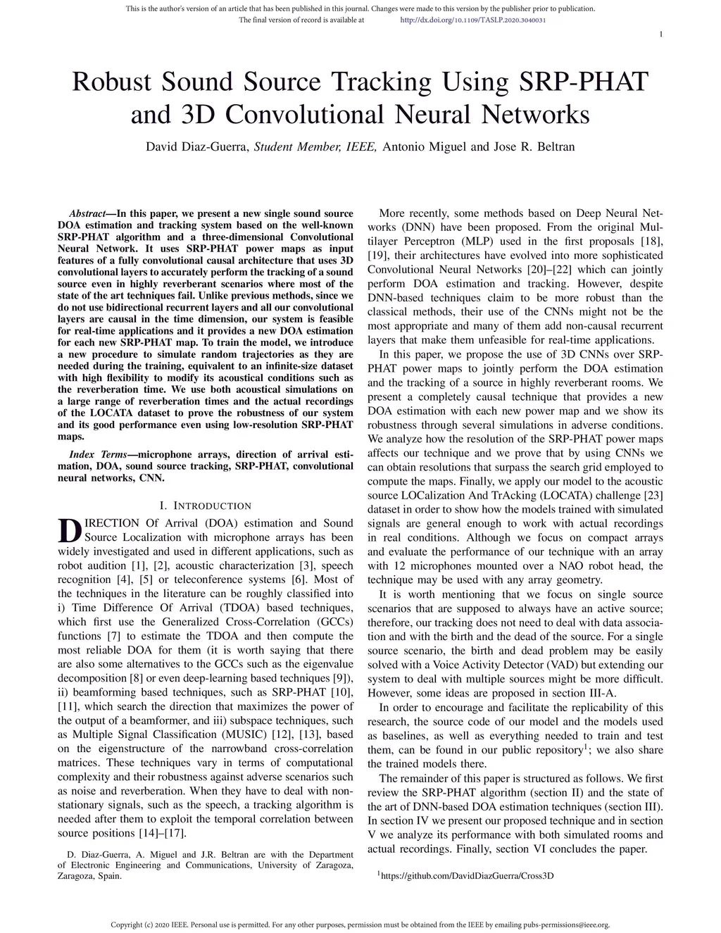 Robust Sound Source Tracking Using SRP-PHAT and 3D Convolutional Neural
