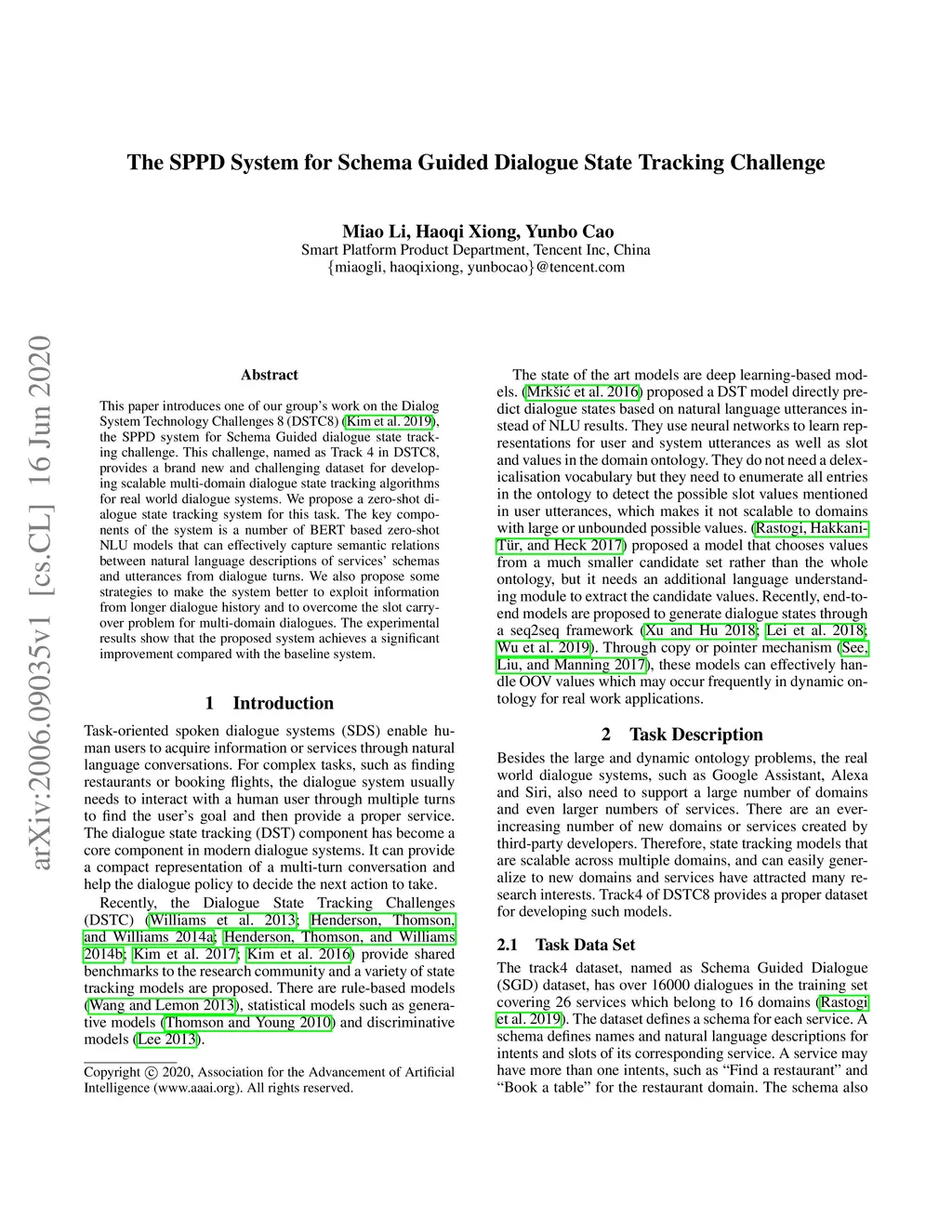 The SPPD System for Schema Guided Dialogue State Tracking Challenge