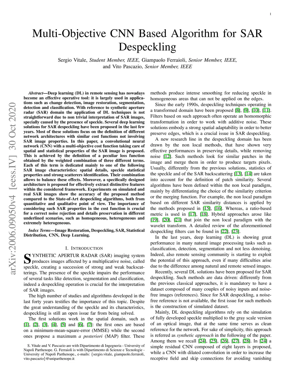 Multi-Objective CNN Based Algorithm for SAR Despeckling