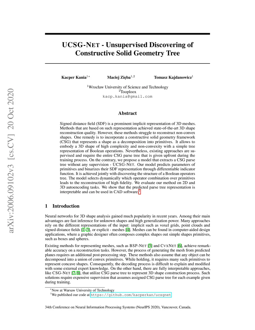 UCSG-Net -- Unsupervised Discovering of Constructive Solid Geometry Tree