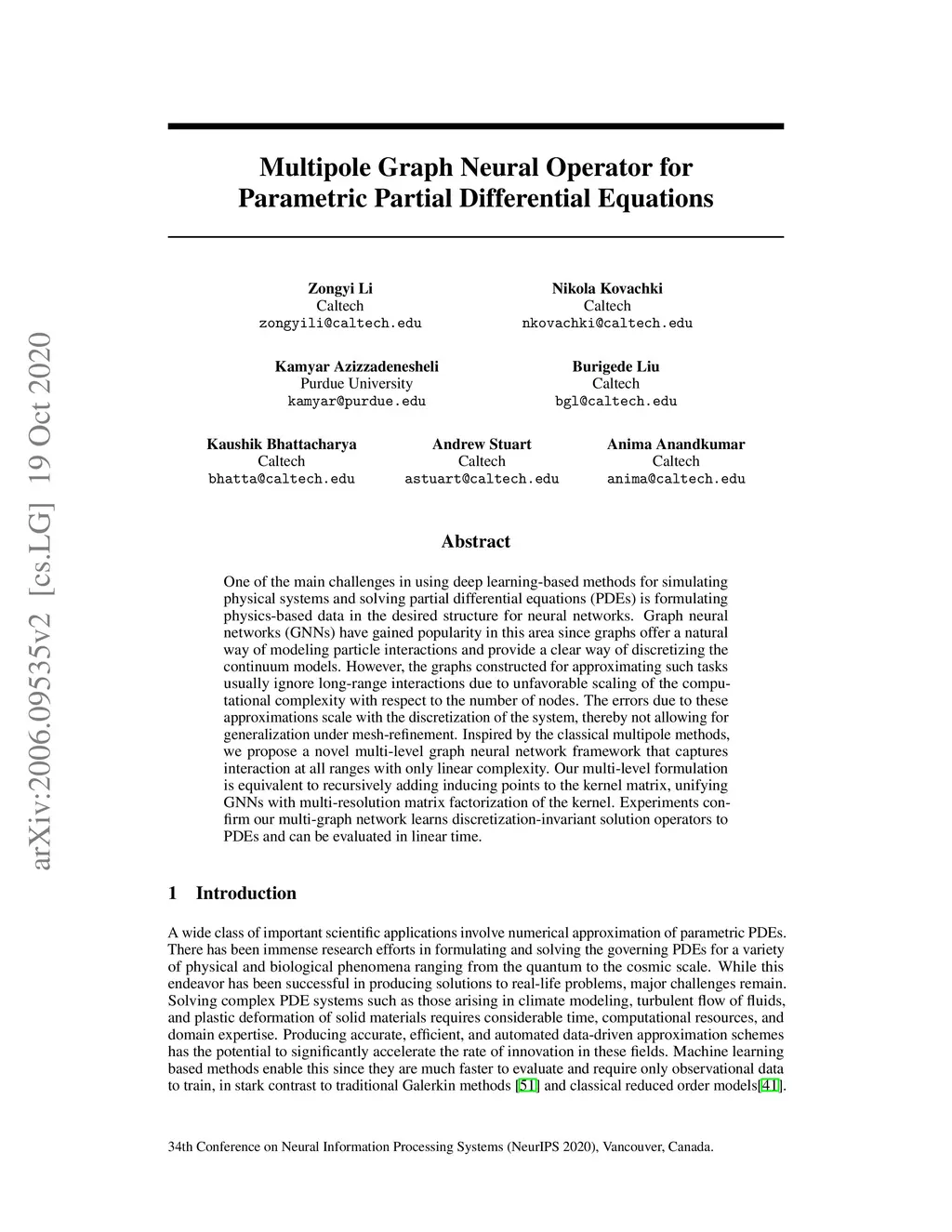 Multipole Graph Neural Operator for Parametric Partial Differential