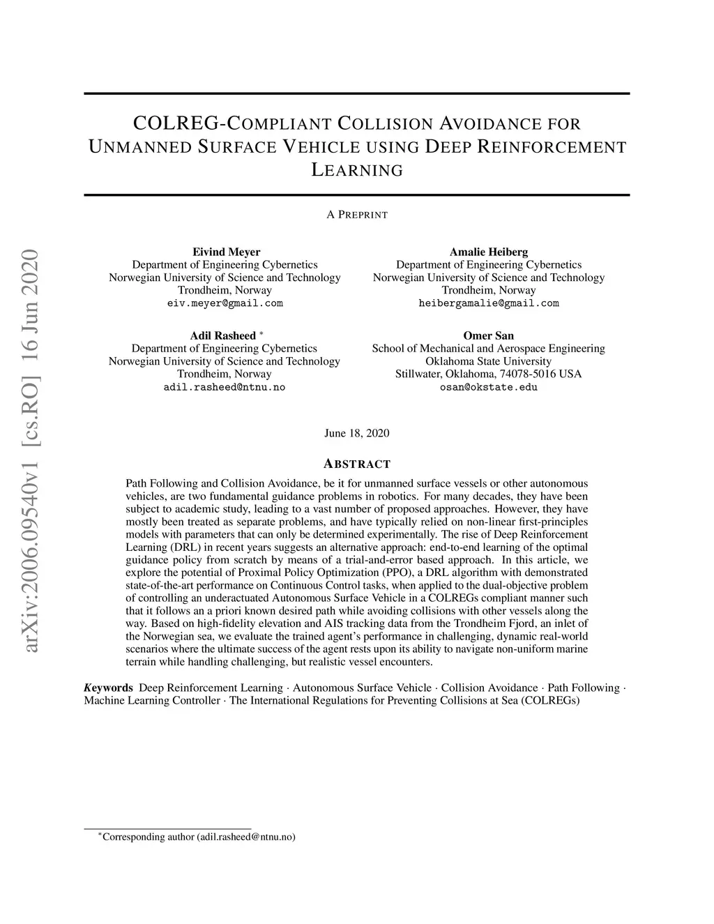 COLREG-Compliant Collision Avoidance for Unmanned Surface Vehicle using