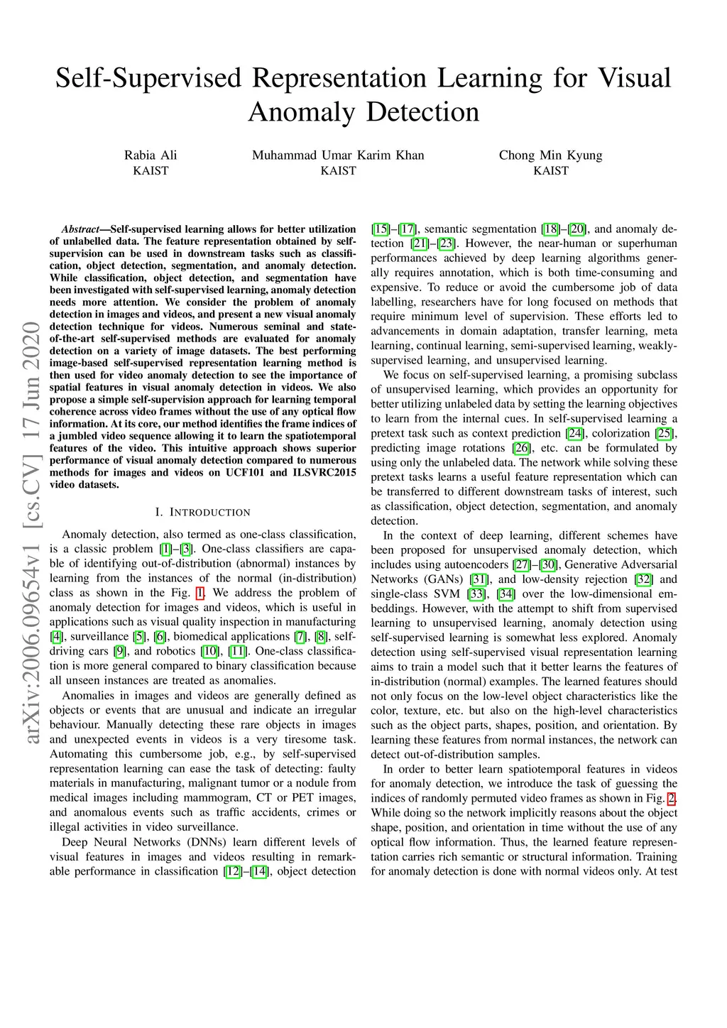 Self-supervised learning allows for better utilization of unlabelled data. The feature representation obtained by self-supervision can be used in downstream tasks such as classification, object detection, segmentation, and anomaly detection. While classification, object detection, and segmentation have been investigated with self-supervised learning, anomaly detection needs more attention. We consider the problem of anomaly detection in images and videos, and present a new visual anomaly detection technique for videos. Numerous seminal and state-of-the-art self-supervised methods are evaluated for anomaly detection on a variety of image datasets. The best performing image-based self-supervised representation learning method is then used for video anomaly detection to see the importance of spatial features in visual anomaly detection in videos. We also propose a simple self-supervision approach for learning temporal coherence across video frames without the use of any optical flow information. At its core, our method identifies the frame indices of a jumbled video sequence allowing it to learn the spatiotemporal features of the video. This intuitive approach shows superior performance of visual anomaly detection compared to numerous methods for images and videos on UCF101 and ILSVRC2015 video datasets.