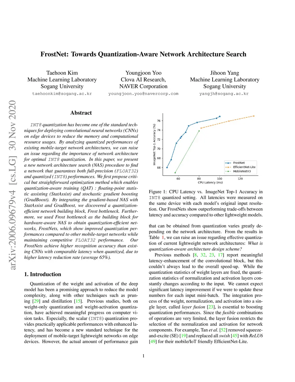 FrostNet: Towards Quantization-Aware Network Architecture Search