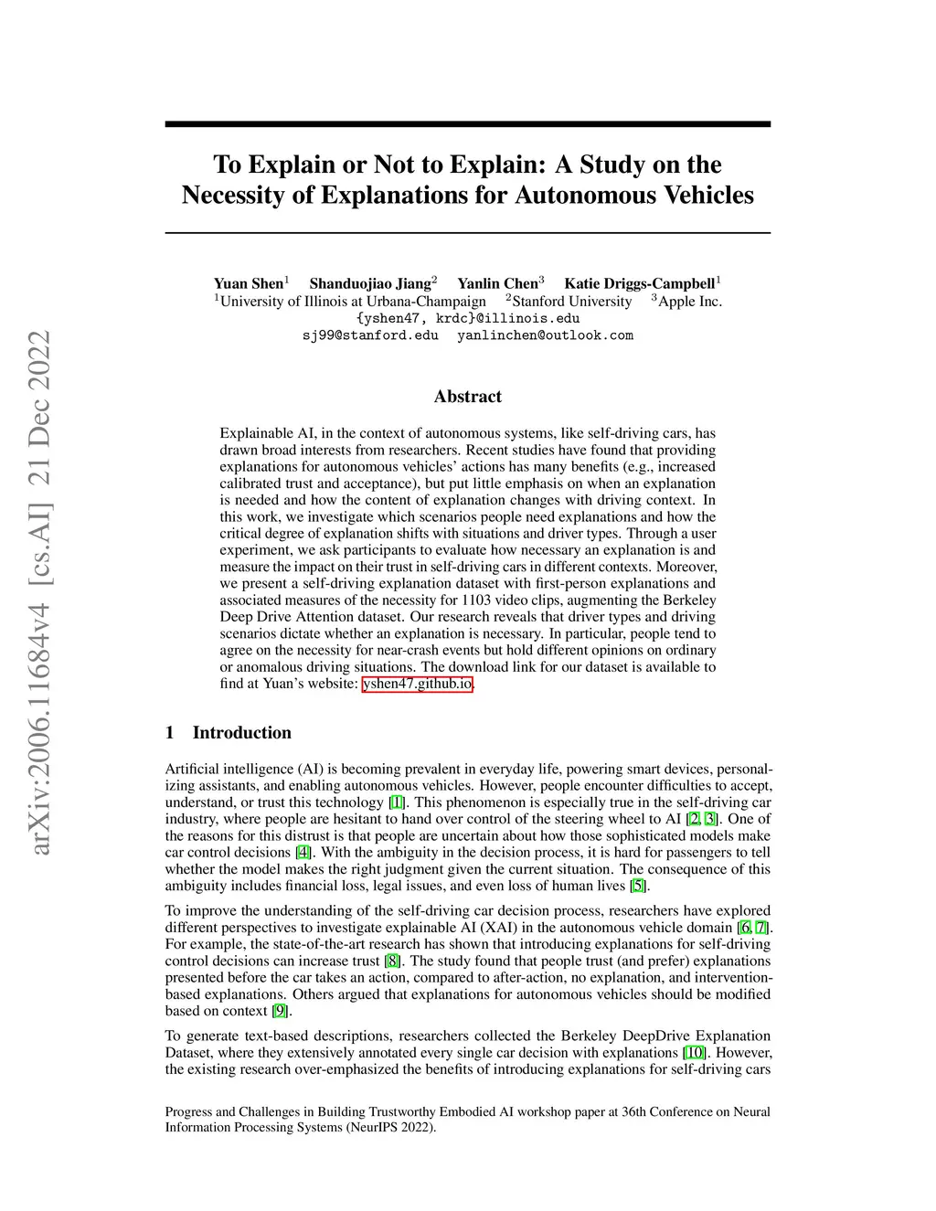 To Explain or Not to Explain: A Study on the Necessity of Explanations for Autonomous Vehicles