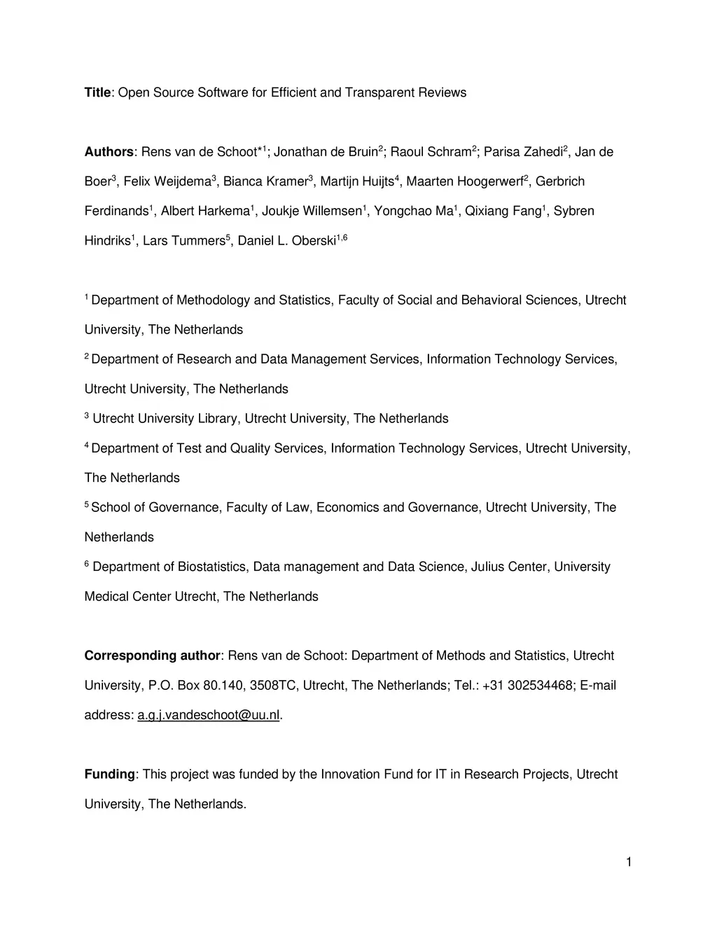 To help researchers conduct a systematic review or meta-analysis as efficiently and transparently as possible, we designed a tool (ASReview) to accelerate the step of screening titles and abstracts. For many tasks - including but not limited to systematic reviews and meta-analyses - the scientific literature needs to be checked systematically. Currently, scholars and practitioners screen thousands of studies by hand to determine which studies to include in their review or meta-analysis. This is error prone and inefficient because of extremely imbalanced data: only a fraction of the screened studies is relevant. The future of systematic reviewing will be an interaction with machine learning algorithms to deal with the enormous increase of available text. We therefore developed an open source machine learning-aided pipeline applying active learning: ASReview. We demonstrate by means of simulation studies that ASReview can yield far more efficient reviewing than manual reviewing, while providing high quality. Furthermore, we describe the options of the free and open source research software and present the results from user experience tests. We invite the community to contribute to open source projects such as our own that provide measurable and reproducible improvements over current practice.