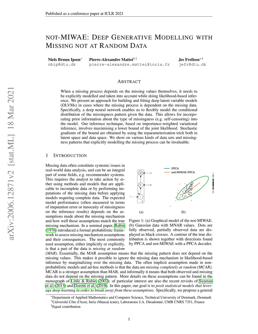 not-MIWAE: Deep Generative Modelling with Missing not at Random Data