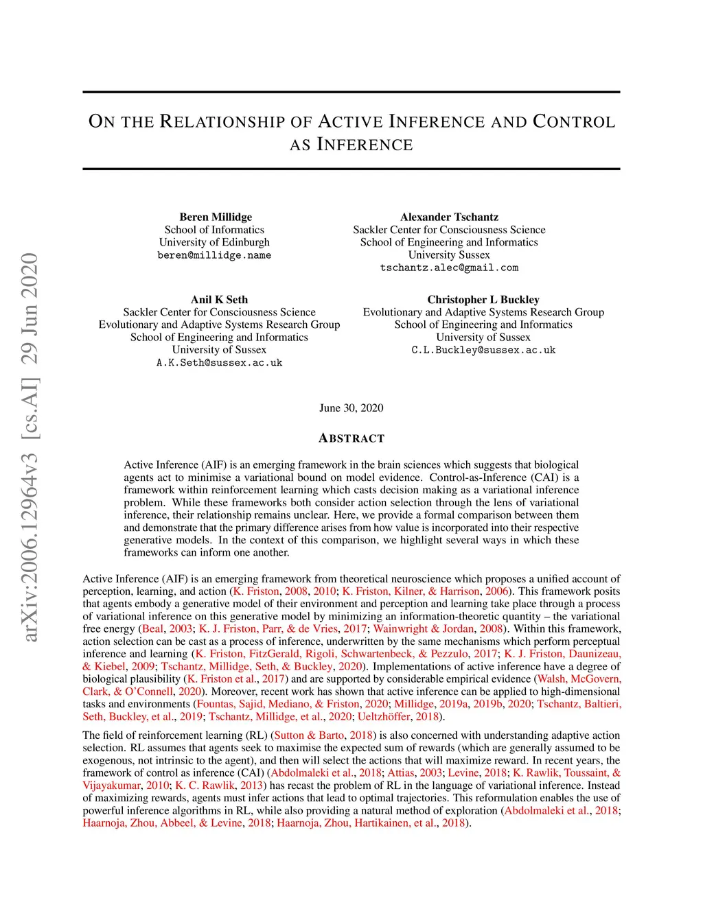Active Inference (AIF) is an emerging framework in the brain sciences which suggests that biological agents act to minimise a variational bound on model evidence. Control-as-Inference (CAI) is a framework within reinforcement learning which casts decision making as a variational inference problem. While these frameworks both consider action selection through the lens of variational inference, their relationship remains unclear. Here, we provide a formal comparison between them and demonstrate that the primary difference arises from how value is incorporated into their respective generative models. In the context of this comparison, we highlight several ways in which these frameworks can inform one another.