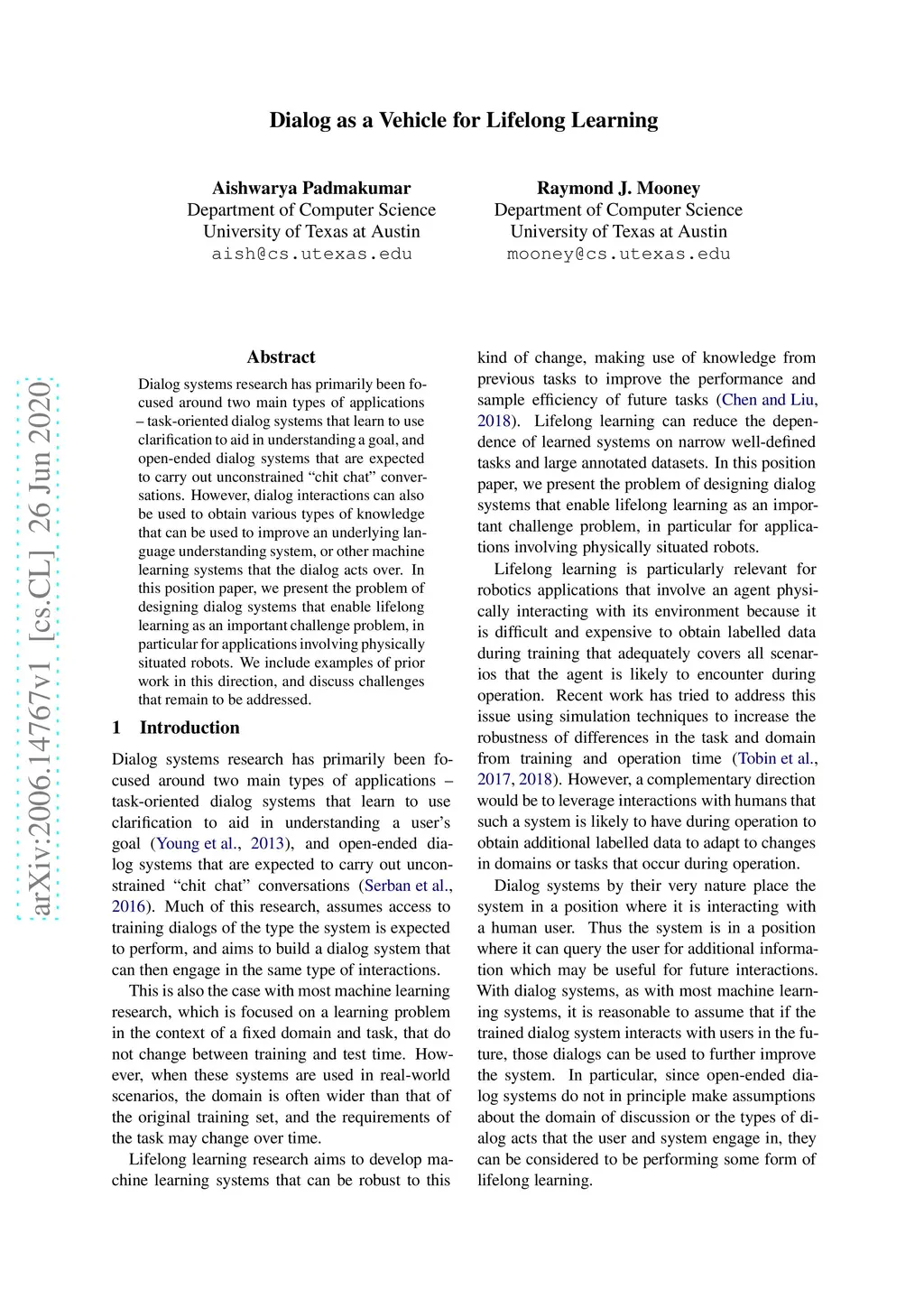 Dialog systems research has primarily been focused around two main types of applications - task-oriented dialog systems that learn to use clarification to aid in understanding a goal, and open-ended dialog systems that are expected to carry out unconstrained "chit chat" conversations. However, dialog interactions can also be used to obtain various types of knowledge that can be used to improve an underlying language understanding system, or other machine learning systems that the dialog acts over. In this position paper, we present the problem of designing dialog systems that enable lifelong learning as an important challenge problem, in particular for applications involving physically situated robots. We include examples of prior work in this direction, and discuss challenges that remain to be addressed.