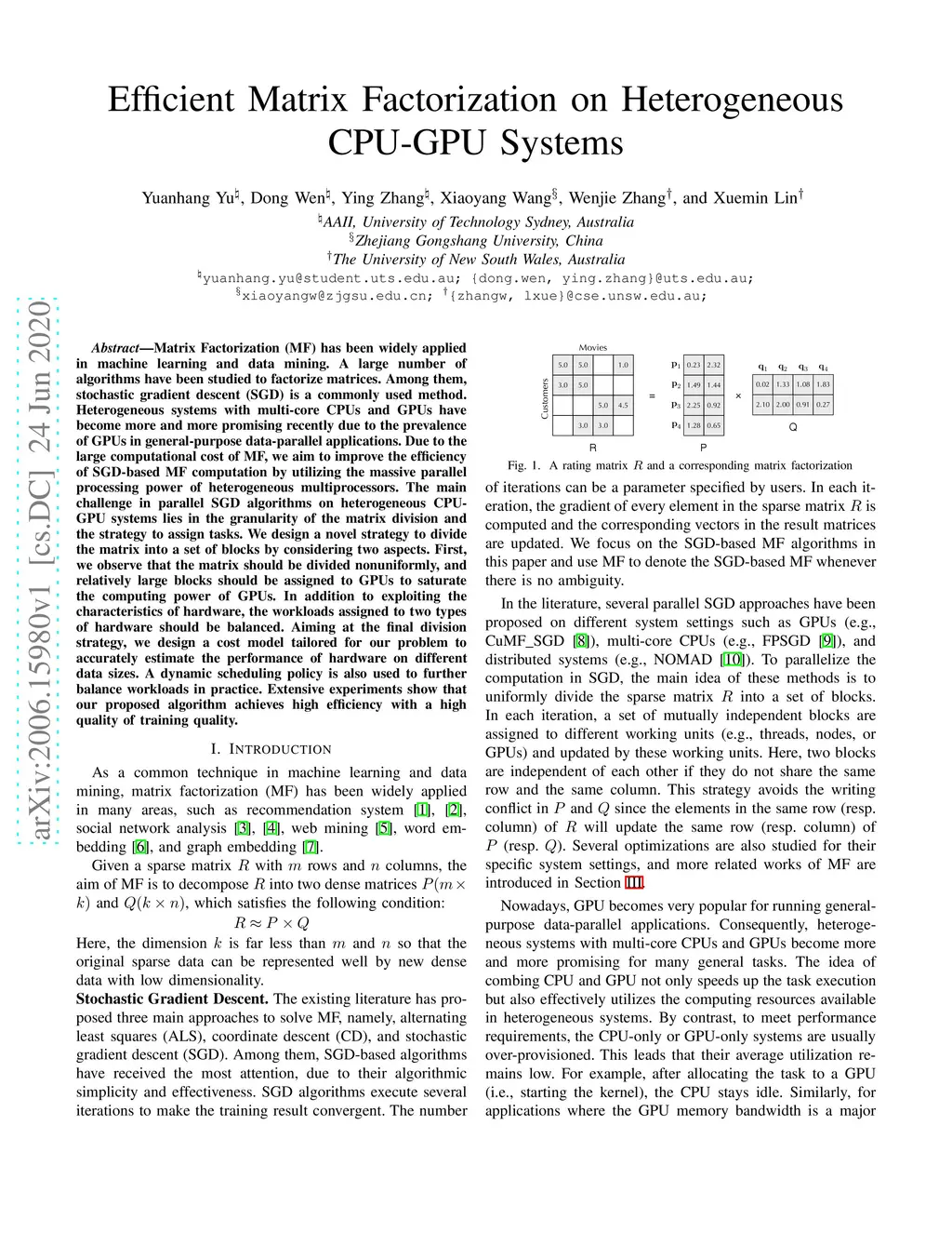 Efficient Matrix Factorization on Heterogeneous CPU-GPU Systems