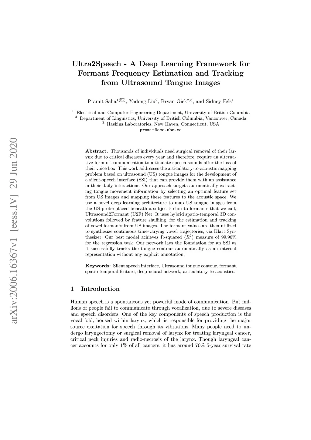 Ultra2Speech -- A Deep Learning Framework for Formant Frequency