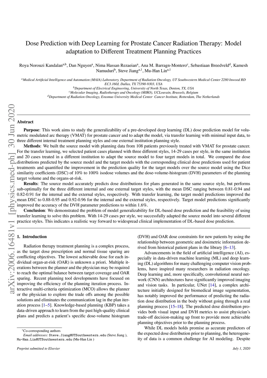 Dose Prediction with Deep Learning for Prostate Cancer Radiation