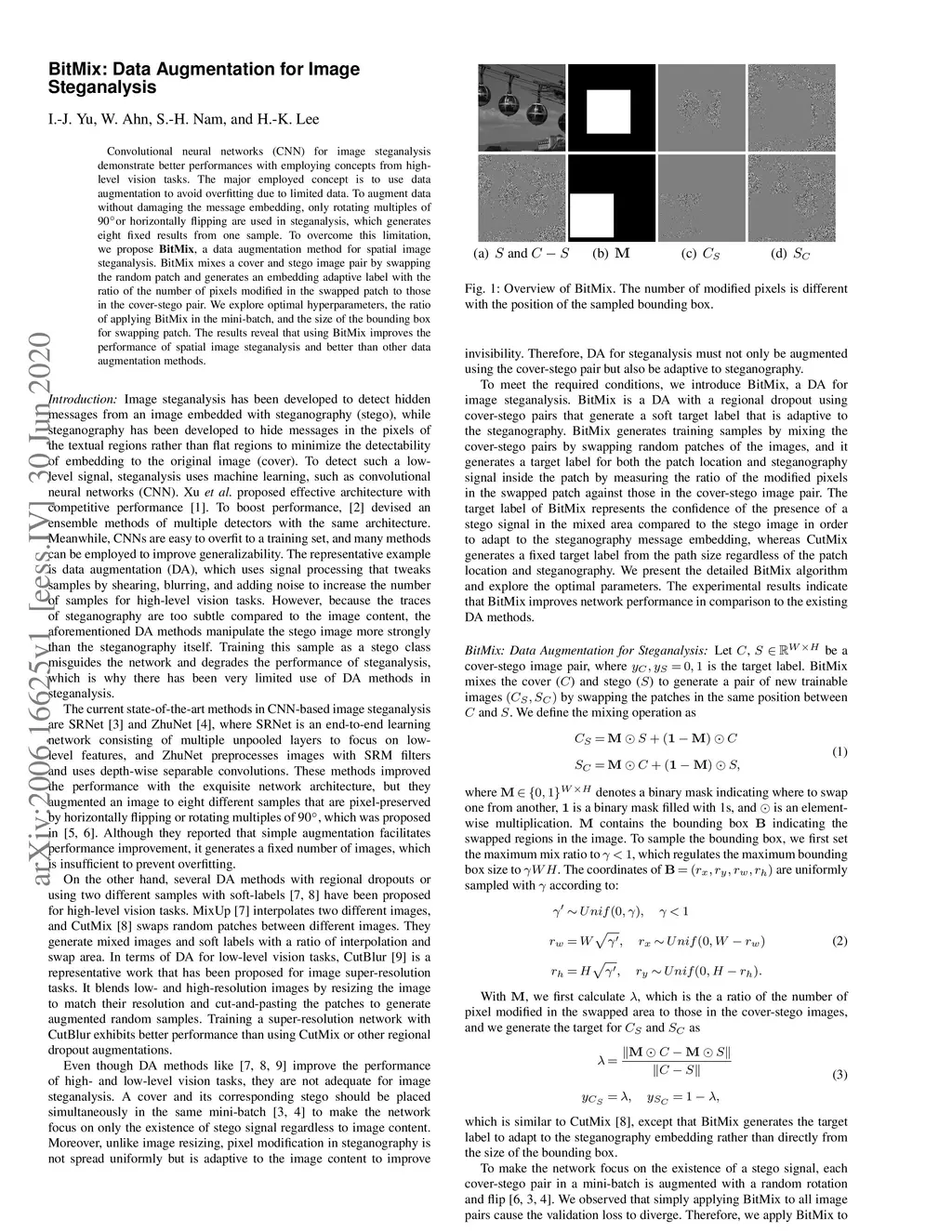 Convolutional neural networks (CNN) for image steganalysis demonstrate better performances with employing concepts from high-level vision tasks. The major employed concept is to use data augmentation to avoid overfitting due to limited data. To augment data without damaging the message embedding, only rotating multiples of 90 degrees or horizontally flipping are used in steganalysis, which generates eight fixed results from one sample. To overcome this limitation, we propose BitMix, a data augmentation method for spatial image steganalysis. BitMix mixes a cover and stego image pair by swapping the random patch and generates an embedding adaptive label with the ratio of the number of pixels modified in the swapped patch to those in the cover-stego pair. We explore optimal hyperparameters, the ratio of applying BitMix in the mini-batch, and the size of the bounding box for swapping patch. The results reveal that using BitMix improves the performance of spatial image steganalysis and better than other data augmentation methods.