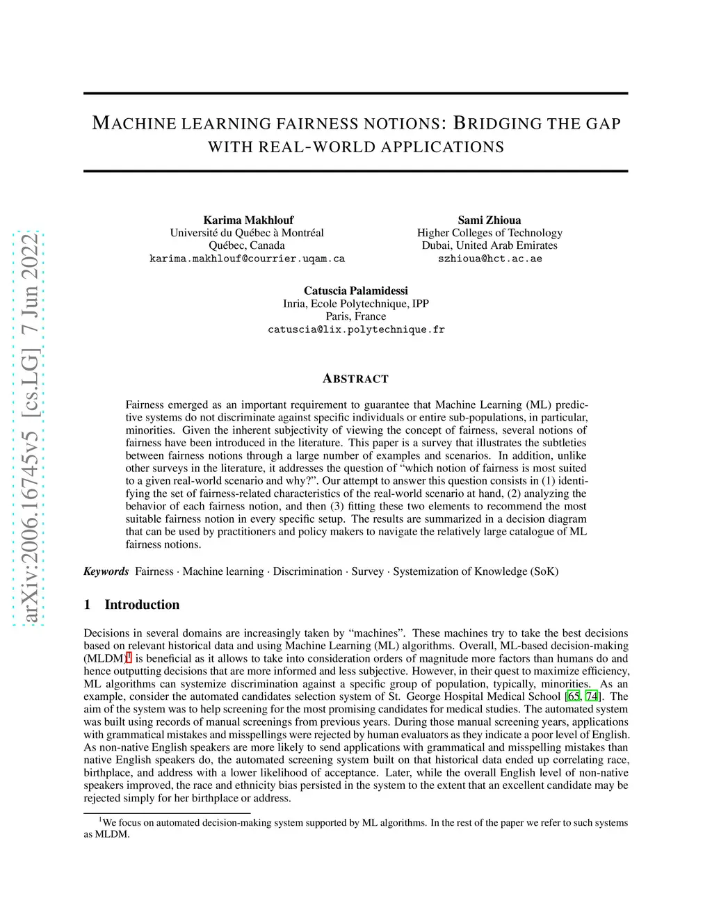 Fairness emerged as an important requirement to guarantee that Machine Learning (ML) predictive systems do not discriminate against specific individuals or entire sub-populations, in particular, minorities. Given the inherent subjectivity of viewing the concept of fairness, several notions of fairness have been introduced in the literature. This paper is a survey that illustrates the subtleties between fairness notions through a large number of examples and scenarios. In addition, unlike other surveys in the literature, it addresses the question of: which notion of fairness is most suited to a given real-world scenario and why? Our attempt to answer this question consists in (1) identifying the set of fairness-related characteristics of the real-world scenario at hand, (2) analyzing the behavior of each fairness notion, and then (3) fitting these two elements to recommend the most suitable fairness notion in every specific setup. The results are summarized in a decision diagram that can be used by practitioners and policymakers to navigate the relatively large catalog of ML.