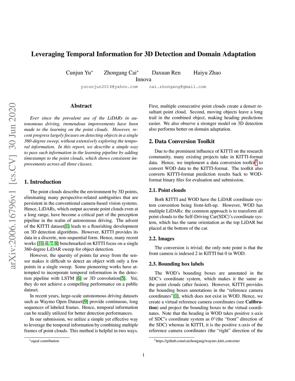 Leveraging Temporal Information for 3D Detection and Domain Adaptation