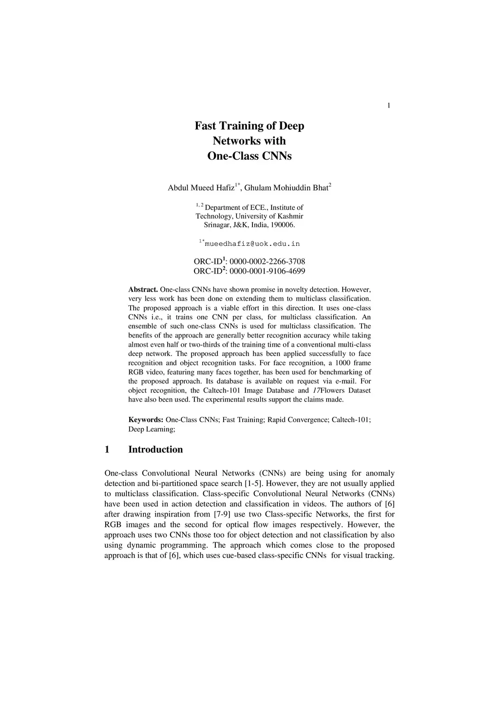 One-class CNNs have shown promise in novelty detection. However, very less work has been done on extending them to multiclass classification. The proposed approach is a viable effort in this direction. It uses one-class CNNs i.e., it trains one CNN per class, for multiclass classification. An ensemble of such one-class CNNs is used for multiclass classification. The benefits of the approach are generally better recognition accuracy while taking almost even half or two-thirds of the training time of a conventional multi-class deep network. The proposed approach has been applied successfully to face recognition and object recognition tasks. For face recognition, a 1000 frame RGB video, featuring many faces together, has been used for benchmarking of the proposed approach. Its database is available on request via e-mail. For object recognition, the Caltech-101 Image Database and 17Flowers Dataset have also been used. The experimental results support the claims made.