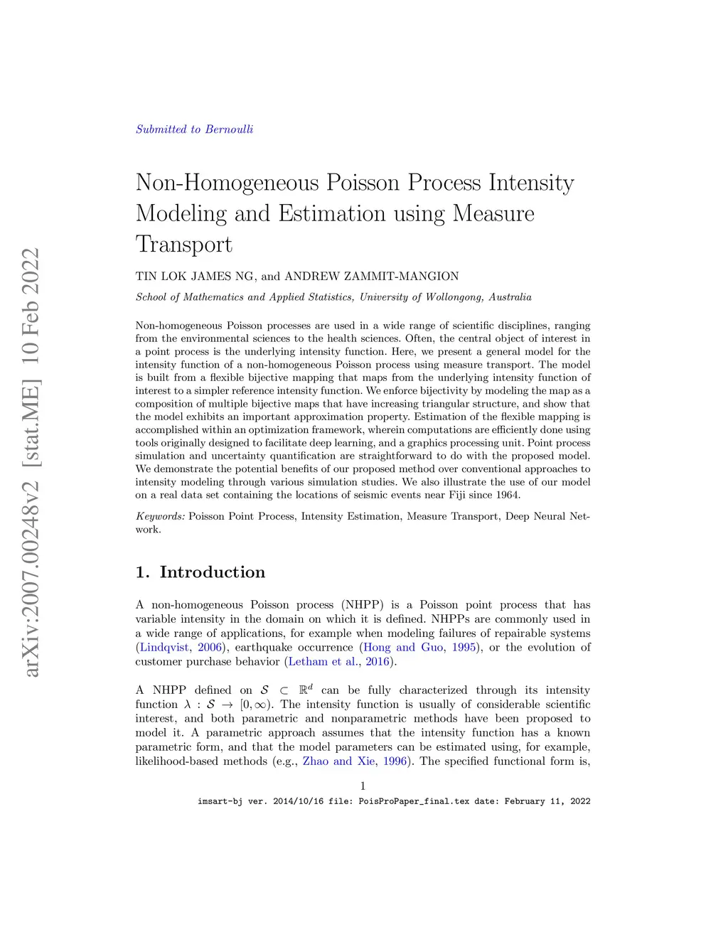 Non-homogeneous Poisson processes are used in a wide range of scientific disciplines, ranging from the environmental sciences to the health sciences. Often, the central object of interest in a point process is the underlying intensity function. Here, we present a general model for the intensity function of a non-homogeneous Poisson process using measure transport. The model is built from a flexible bijective mapping that maps from the underlying intensity function of interest to a simpler reference intensity function. We enforce bijectivity by modeling the map as a composition of multiple simple bijective maps, and show that the model exhibits an important approximation property. Estimation of the flexible mapping is accomplished within an optimization framework, wherein computations are efficiently done using recent technological advances in deep learning and a graphics processing unit. Although we find that intensity function estimates obtained with our method are not necessarily superior to those obtained using conventional methods, the modeling representation brings with it other advantages such as facilitated point process simulation and uncertainty quantification. Modeling point processes in higher dimensions is also facilitated using our approach. We illustrate the use of our model on both simulated data, and a real data set containing the locations of seismic events near Fiji since 1964.