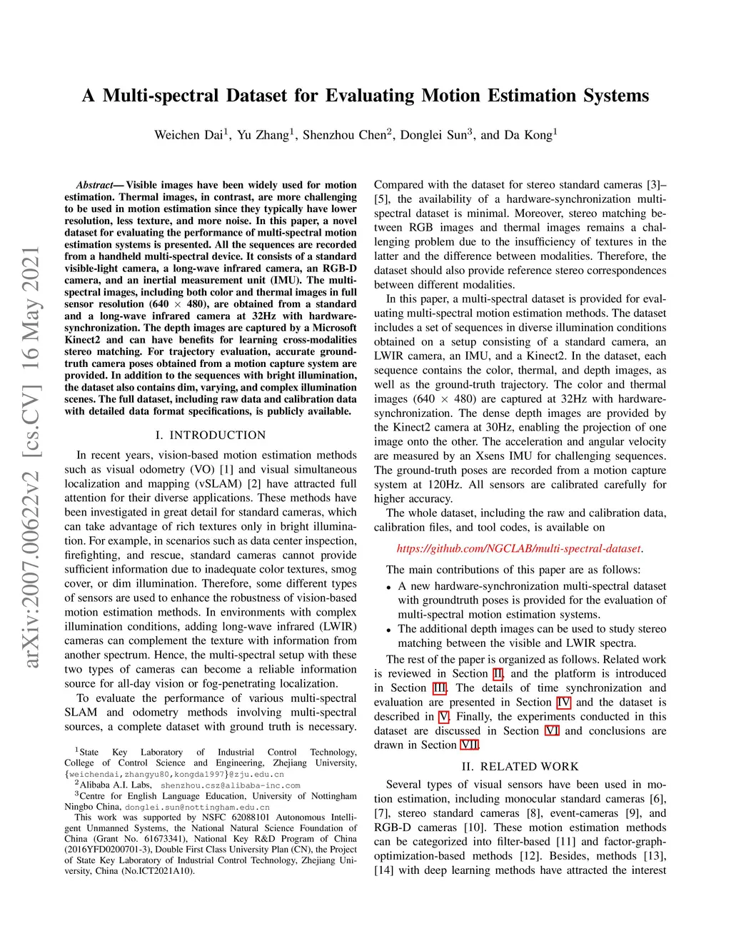 A Multi-spectral Dataset for Evaluating Motion Estimation Systems