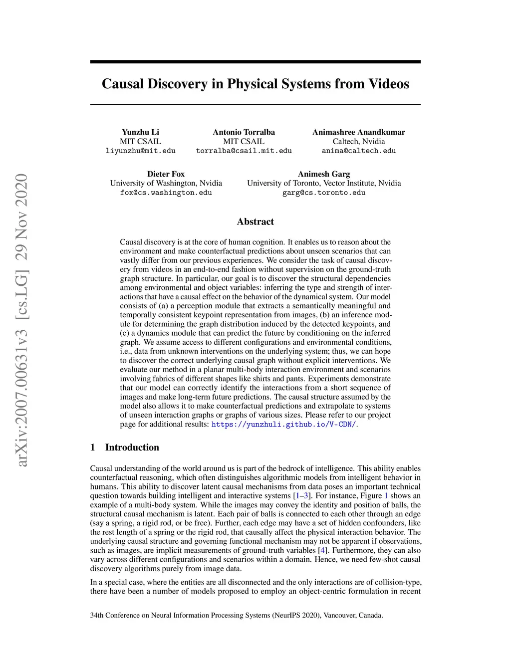 Causal Discovery in Physical Systems from Videos