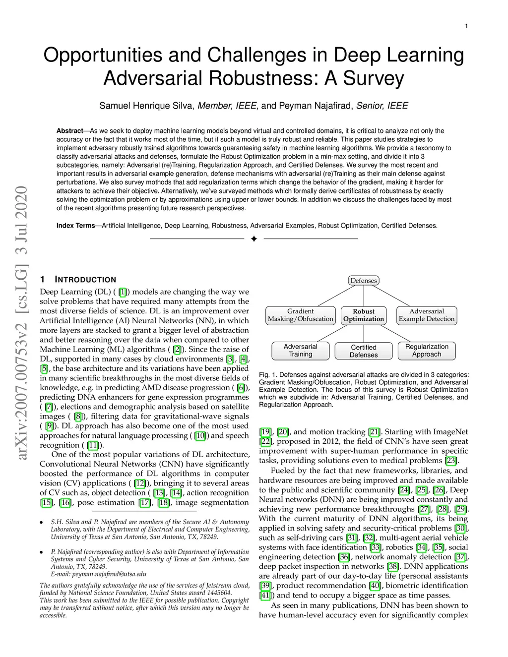 As we seek to deploy machine learning models beyond virtual and controlled domains, it is critical to analyze not only the accuracy or the fact that it works most of the time, but if such a model is truly robust and reliable. This paper studies strategies to implement adversary robustly trained algorithms towards guaranteeing safety in machine learning algorithms. We provide a taxonomy to classify adversarial attacks and defenses, formulate the Robust Optimization problem in a min-max setting and divide it into 3 subcategories, namely: Adversarial (re)Training, Regularization Approach, and Certified Defenses. We survey the most recent and important results in adversarial example generation, defense mechanisms with adversarial (re)Training as their main defense against perturbations. We also survey mothods that add regularization terms that change the behavior of the gradient, making it harder for attackers to achieve their objective. Alternatively, we've surveyed methods which formally derive certificates of robustness by exactly solving the optimization problem or by approximations using upper or lower bounds. In addition, we discuss the challenges faced by most of the recent algorithms presenting future research perspectives.