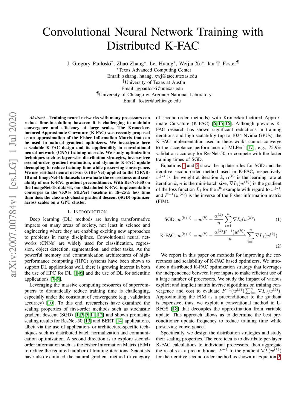Convolutional Neural Network Training with Distributed K-FAC