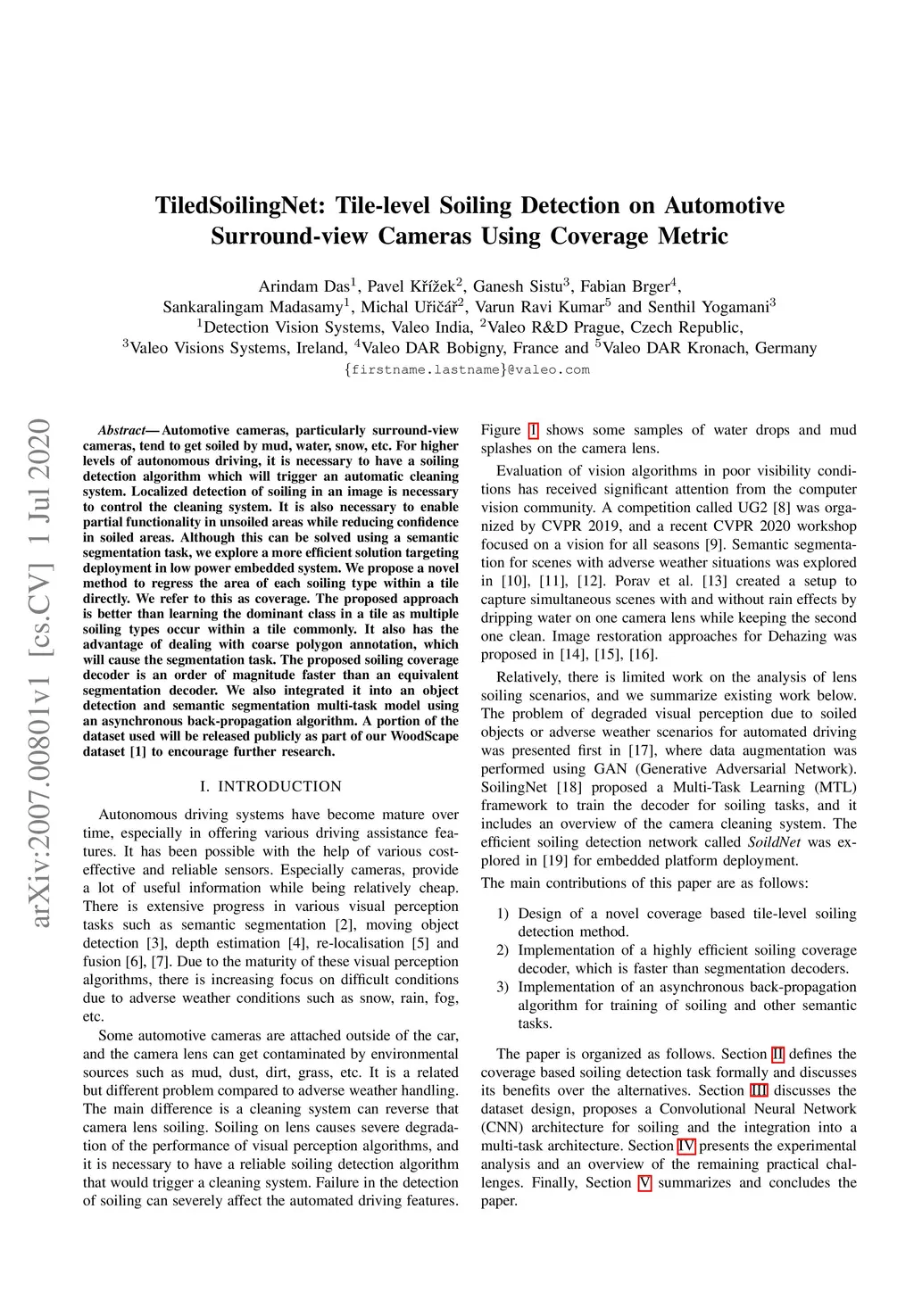 Automotive cameras, particularly surround-view cameras, tend to get soiled by mud, water, snow, etc. For higher levels of autonomous driving, it is necessary to have a soiling detection algorithm which will trigger an automatic cleaning system. Localized detection of soiling in an image is necessary to control the cleaning system. It is also necessary to enable partial functionality in unsoiled areas while reducing confidence in soiled areas. Although this can be solved using a semantic segmentation task, we explore a more efficient solution targeting deployment in low power embedded system. We propose a novel method to regress the area of each soiling type within a tile directly. We refer to this as coverage. The proposed approach is better than learning the dominant class in a tile as multiple soiling types occur within a tile commonly. It also has the advantage of dealing with coarse polygon annotation, which will cause the segmentation task. The proposed soiling coverage decoder is an order of magnitude faster than an equivalent segmentation decoder. We also integrated it into an object detection and semantic segmentation multi-task model using an asynchronous back-propagation algorithm. A portion of the dataset used will be released publicly as part of our WoodScape dataset to encourage further research.