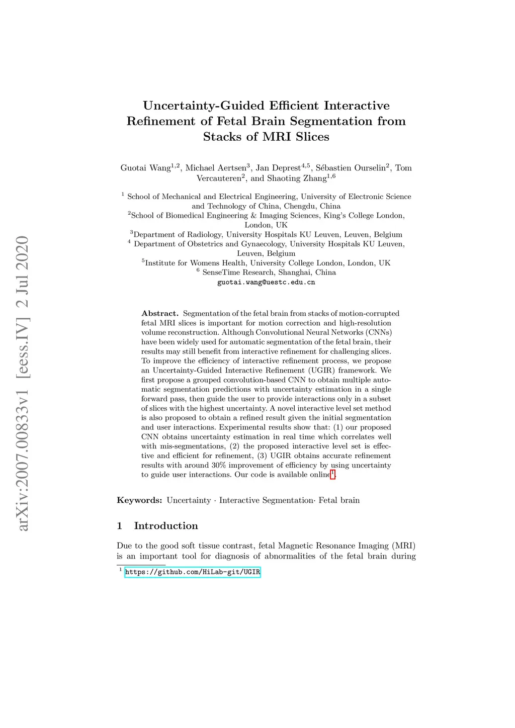 Uncertainty-Guided Efficient Interactive Refinement of Fetal Brain