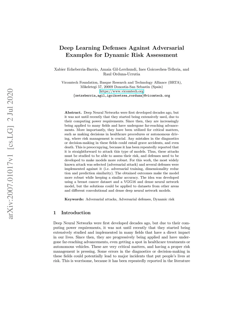 Deep Learning Defenses Against Adversarial Examples for Dynamic Risk