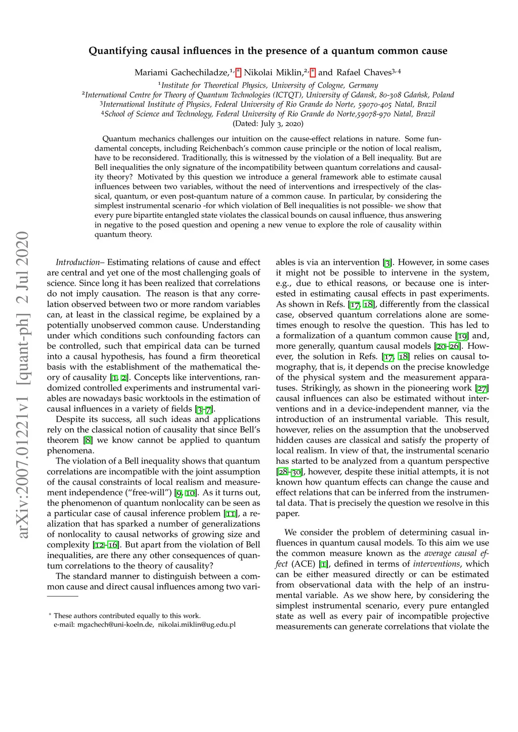 Quantifying causal influences in the presence of a quantum common cause
