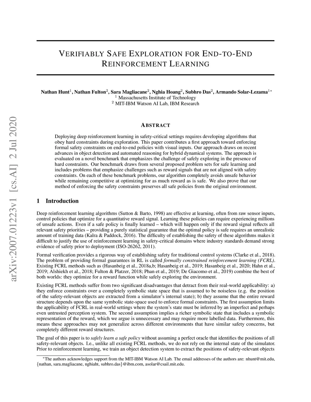 Verifiably Safe Exploration for End-to-End Reinforcement Learning