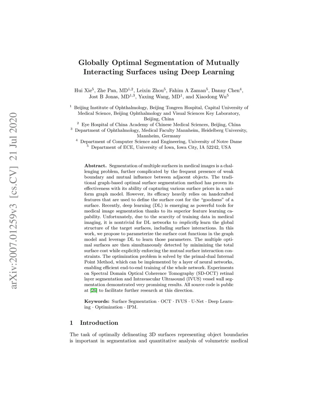 Globally Optimal Segmentation of Mutually Interacting Surfaces using Deep Learning