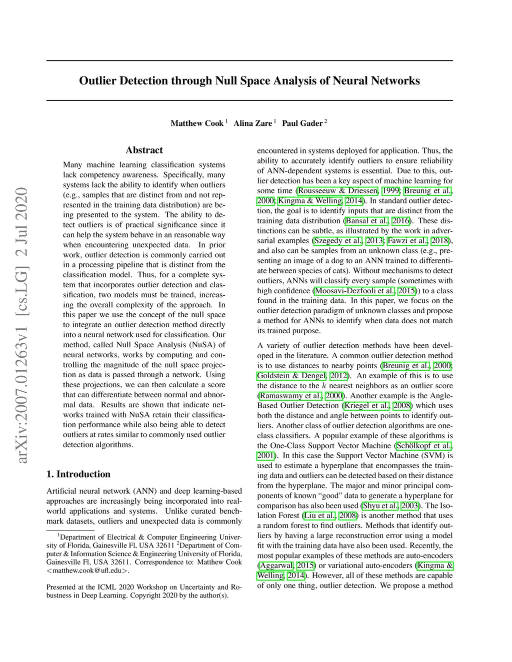 Outlier Detection through Null Space Analysis of Neural Networks