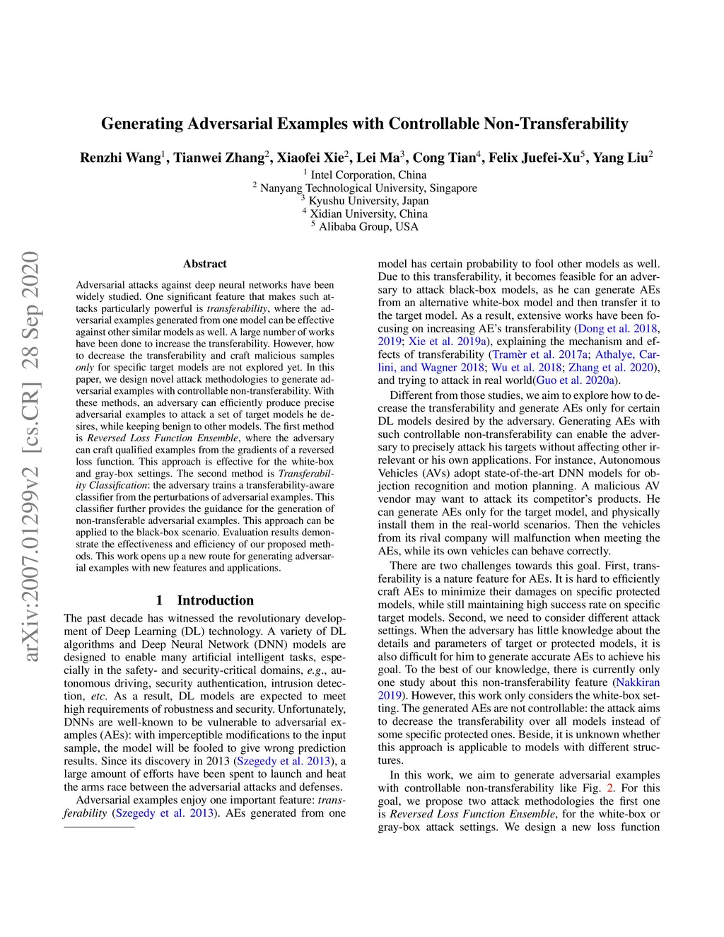 Adversarial attacks against Deep Neural Networks have been widely studied. One significant feature that makes such attacks particularly powerful is transferability, where the adversarial examples generated from one model can be effective against other similar models as well. A large number of works have been done to increase the transferability. However, how to decrease the transferability and craft malicious samples only for specific target models are not explored yet. In this paper, we design novel attack methodologies to generate adversarial examples with controllable non-transferability. With these methods, an adversary can efficiently produce precise adversarial examples to attack a set of target models he desires, while keeping benign to other models. The first method is Reversed Loss Function Ensemble, where the adversary can craft qualified examples from the gradients of a reversed loss function. This approach is effective for the white-box and gray-box settings. The second method is Transferability Classification: the adversary trains a transferability-aware classifier from the perturbations of adversarial examples. This classifier further provides the guidance for the generation of non-transferable adversarial examples. This approach can be applied to the black-box scenario. Evaluation results demonstrate the effectiveness and efficiency of our proposed methods. This work opens up a new route for generating adversarial examples with new features and applications.