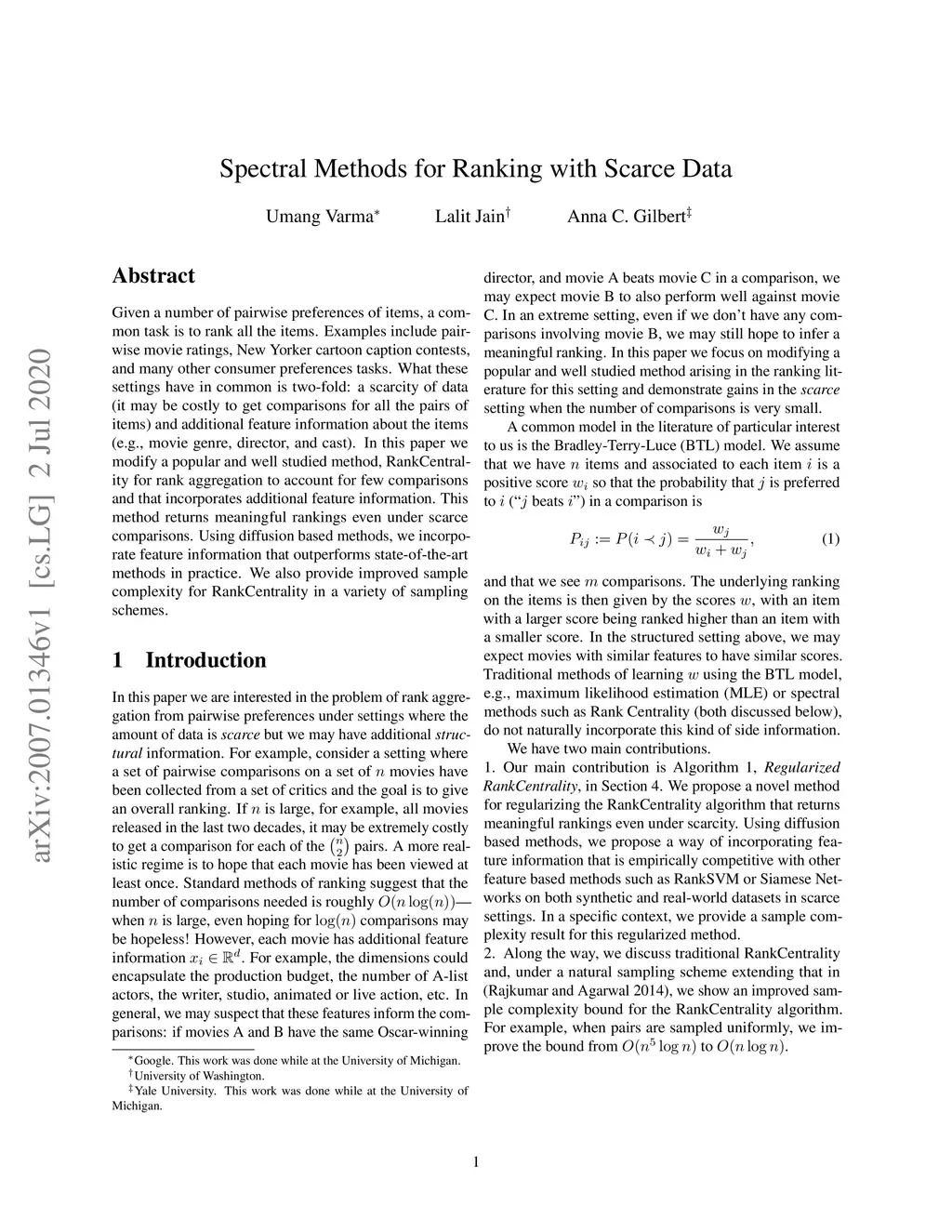Spectral Methods for Ranking with Scarce Data