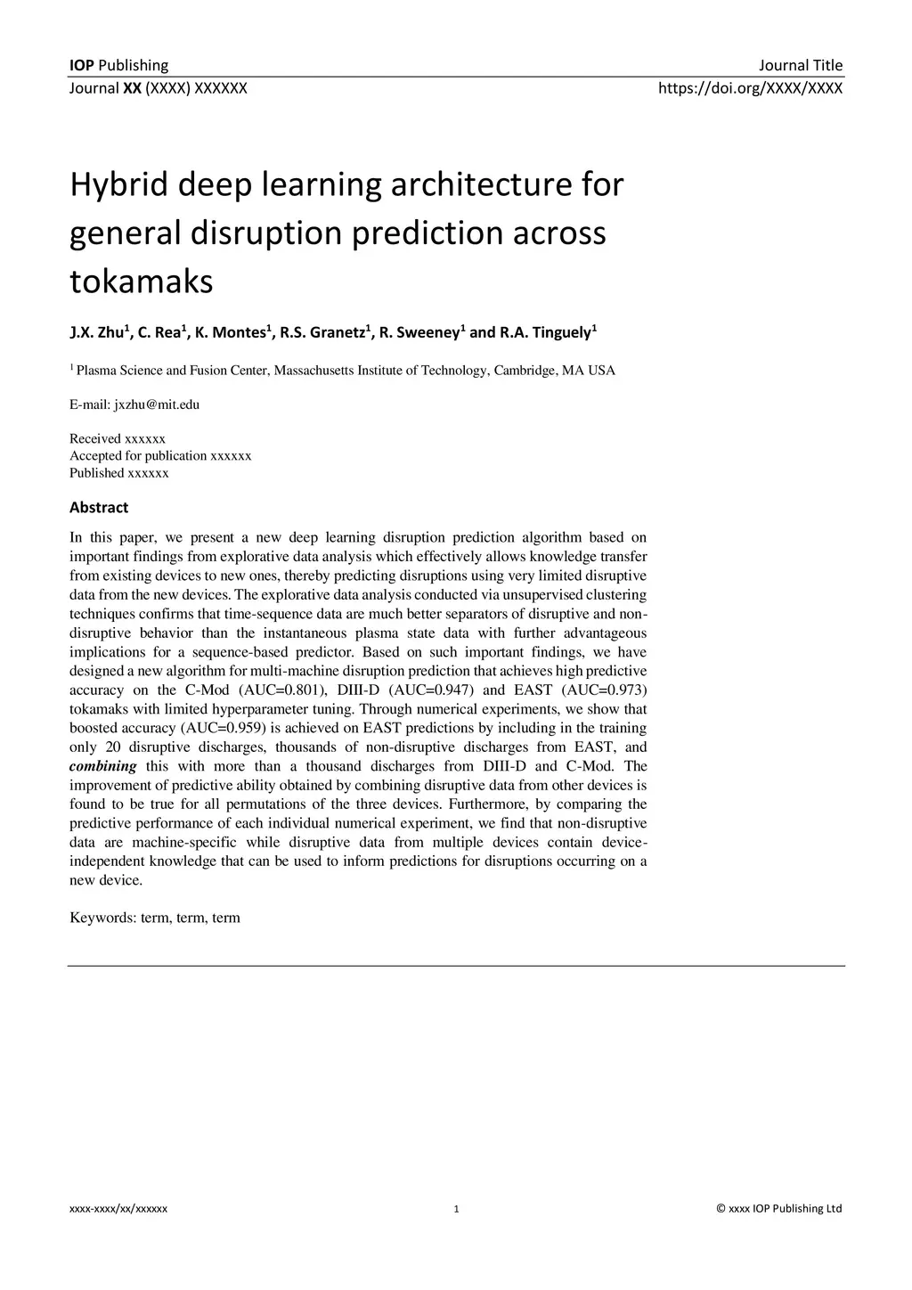 Hybrid deep learning architecture for general disruption prediction
