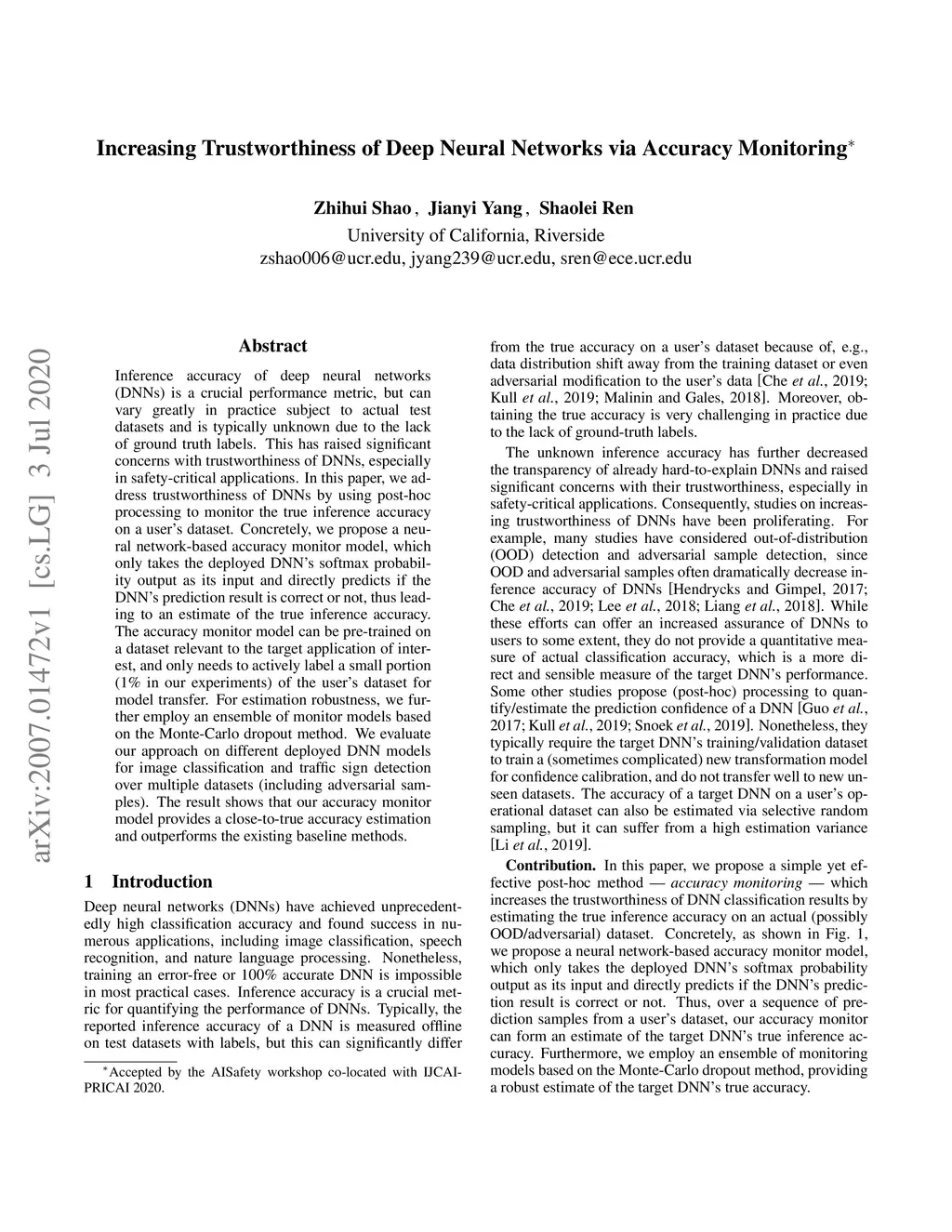 Increasing Trustworthiness of Deep Neural Networks via Accuracy