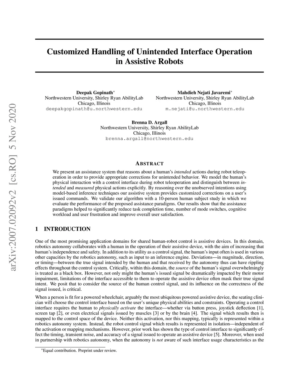 Customized Handling of Unintended Interface Operation in Assistive