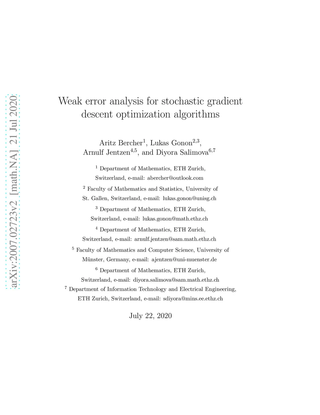 Weak error analysis for stochastic gradient descent optimization