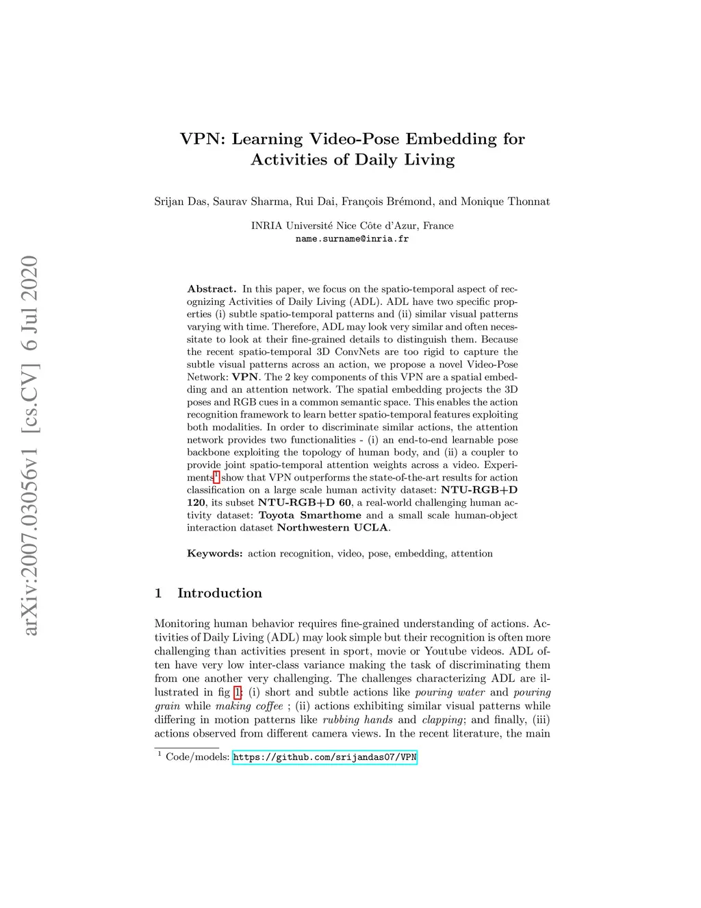 VPN: Learning Video-Pose Embedding for Activities of Daily Living