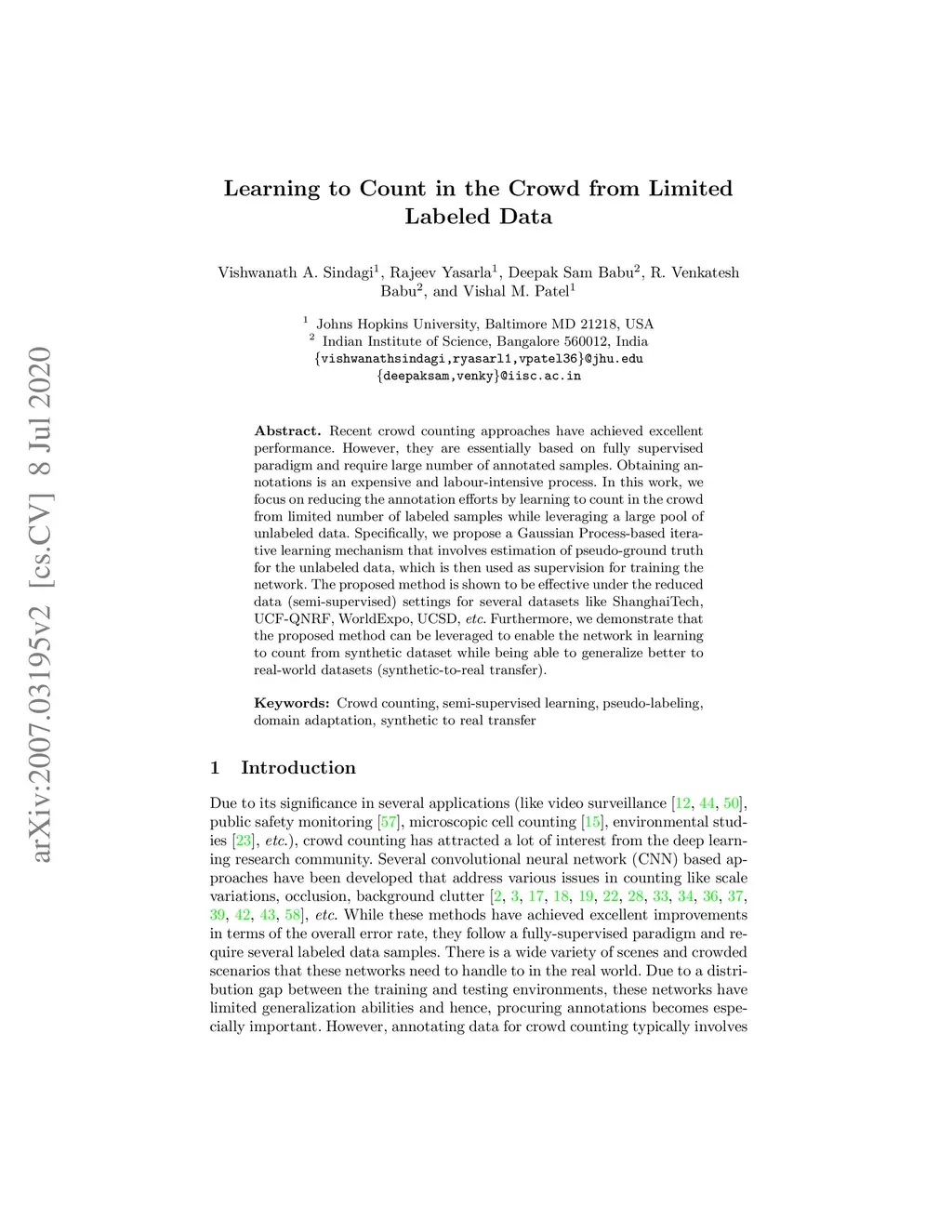 Learning to Count in the Crowd from Limited Labeled Data