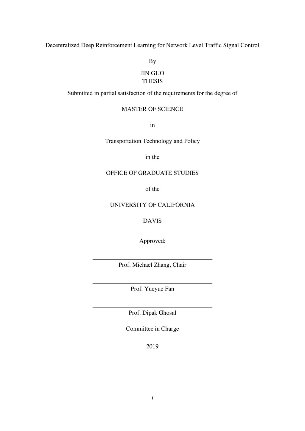 In this thesis, I propose a family of fully decentralized deep multi-agent reinforcement learning (MARL) algorithms to achieve high, real-time performance in network-level traffic signal control. In this approach, each intersection is modeled as an agent that plays a Markovian Game against the other intersection nodes in a traffic signal network modeled as an undirected graph, to approach the optimal reduction in delay. Following Partially Observable Markov Decision Processes (POMDPs), there are 3 levels of communication schemes between adjacent learning agents: independent deep Q-leaning (IDQL), shared states reinforcement learning (S2RL) and a shared states & rewards version of S2RL--S2R2L. In these 3 variants of decentralized MARL schemes, individual agent trains its local deep Q network (DQN) separately, enhanced by convergence-guaranteed techniques like double DQN, prioritized experience replay, multi-step bootstrapping, etc. To test the performance of the proposed three MARL algorithms, a SUMO-based simulation platform is developed to mimic the traffic evolution of the real world. Fed with random traffic demand between permitted OD pairs, a 4x4 Manhattan-style grid network is set up as the testbed, two different vehicle arrival rates are generated for model training and testing. The experiment results show that S2R2L has a quicker convergence rate and better convergent performance than IDQL and S2RL in the training process. Moreover, three MARL schemes all reveal exceptional generalization abilities. Their testing results surpass the benchmark Max Pressure (MP) algorithm, under the criteria of average vehicle delay, network-level queue length and fuel consumption rate. Notably, S2R2L has the best testing performance of reducing 34.55% traffic delay and dissipating 10.91% queue length compared with MP.