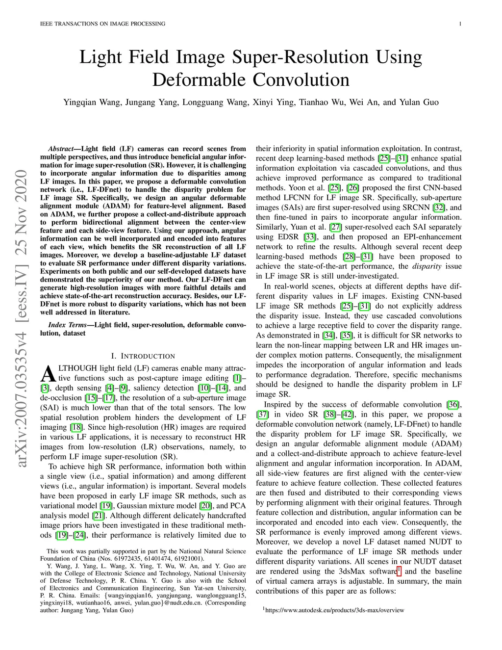 Light Field Image Super-Resolution Using Deformable Convolution