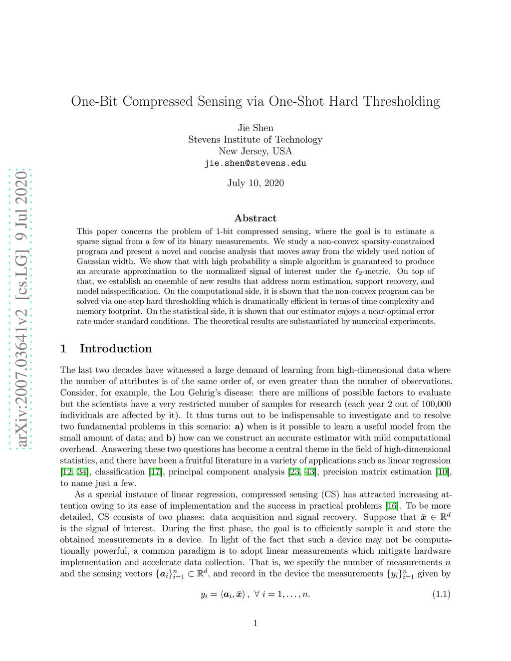 This paper concerns the problem of 1-bit compressed sensing, where the goal is to estimate a sparse signal from a few of its binary measurements. We study a non-convex sparsity-constrained program and present a novel and concise analysis that moves away from the widely used notion of Gaussian width. We show that with high probability a simple algorithm is guaranteed to produce an accurate approximation to the normalized signal of interest under the -metric. On top of that, we establish an ensemble of new results that address norm estimation, support recovery, and model misspecification. On the computational side, it is shown that the non-convex program can be solved via one-step hard thresholding which is dramatically efficient in terms of time complexity and memory footprint. On the statistical side, it is shown that our estimator enjoys a near-optimal error rate under standard conditions. The theoretical results are substantiated by numerical experiments.