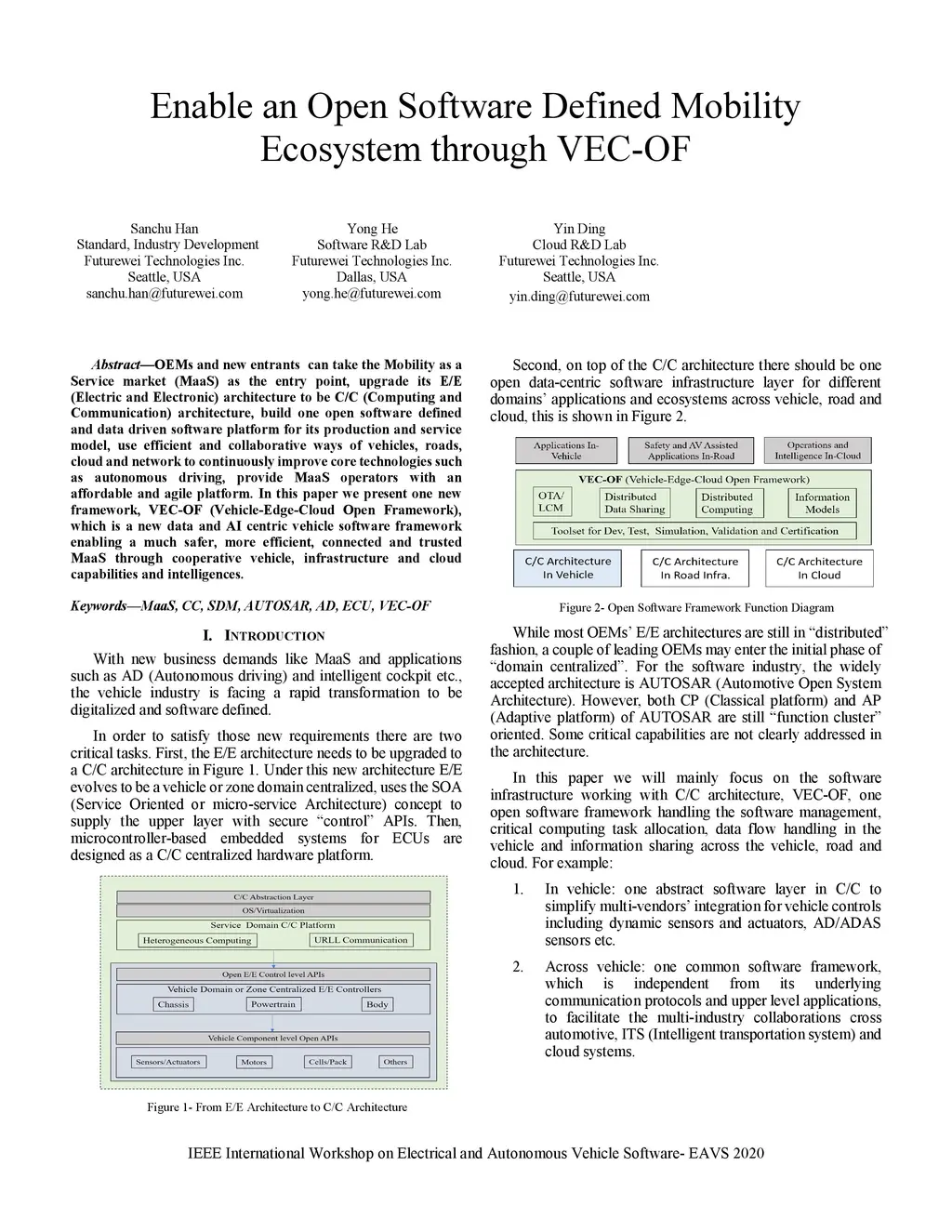 OEMs and new entrants can take the Mobility as a Service market (MaaS) as the entry point, upgrade its E/E (Electric and Electronic) architecture to be C/C (Computing and Communication) architecture, build one open software defined and data driven software platform for its production and service model, use efficient and collaborative ways of vehicles, roads, cloud and network to continuously improve core technologies such as autonomous driving, provide MaaS operators with an affordable and agile platform. In this paper we present one new framework, VEC-OF (Vehicle-Edge-Cloud Open Framework), which is a new data and AI centric vehicle software framework enabling a much safer, more efficient, connected and trusted MaaS through cooperative vehicle, infrastructure and cloud capabilities and intelligence