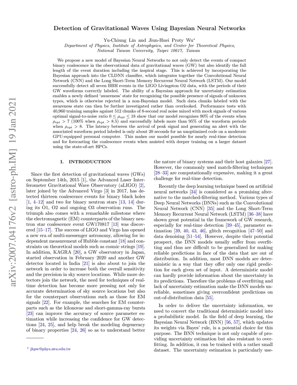 Detection of Gravitational Waves Using Bayesian Neural Networks
