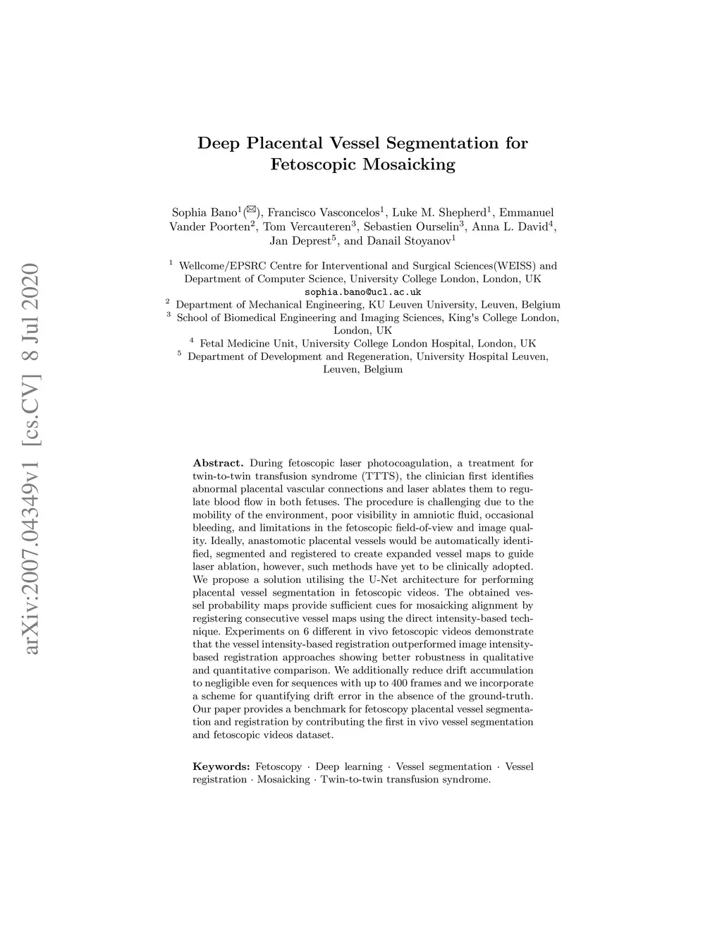 Deep Placental Vessel Segmentation for Fetoscopic Mosaicking