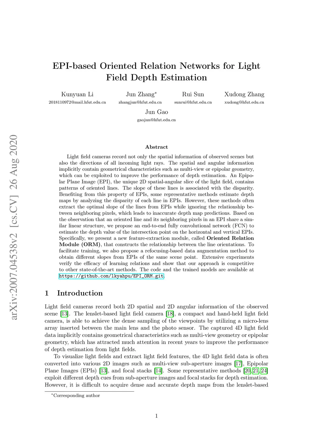 EPI-based Oriented Relation Networks for Light Field Depth Estimation