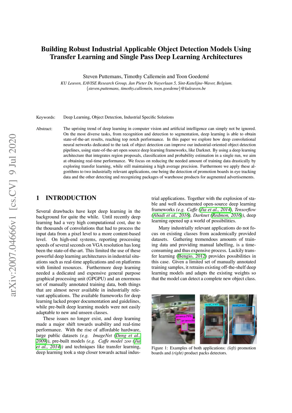 The uprising trend of deep learning in computer vision and artificial intelligence can simply not be ignored. On the most diverse tasks, from recognition and detection to segmentation, deep learning is able to obtain state-of-the-art results, reaching top notch performance. In this paper we explore how deep convolutional neural networks dedicated to the task of object detection can improve our industrial-oriented object detection pipelines, using state-of-the-art open source deep learning frameworks, like Darknet. By using a deep learning architecture that integrates region proposals, classification and probability estimation in a single run, we aim at obtaining real-time performance. We focus on reducing the needed amount of training data drastically by exploring transfer learning, while still maintaining a high average precision. Furthermore we apply these algorithms to two industrially relevant applications, one being the detection of promotion boards in eye tracking data and the other detecting and recognizing packages of warehouse products for augmented advertisements.