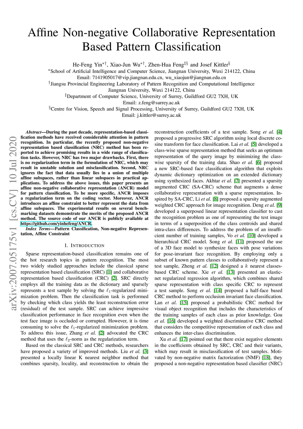 Affine Non-negative Collaborative Representation Based Pattern